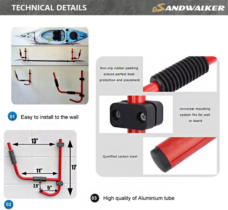| Applicazione | Interno, esterno, muro, picchetti per riporre kayak, canoa, Sup |