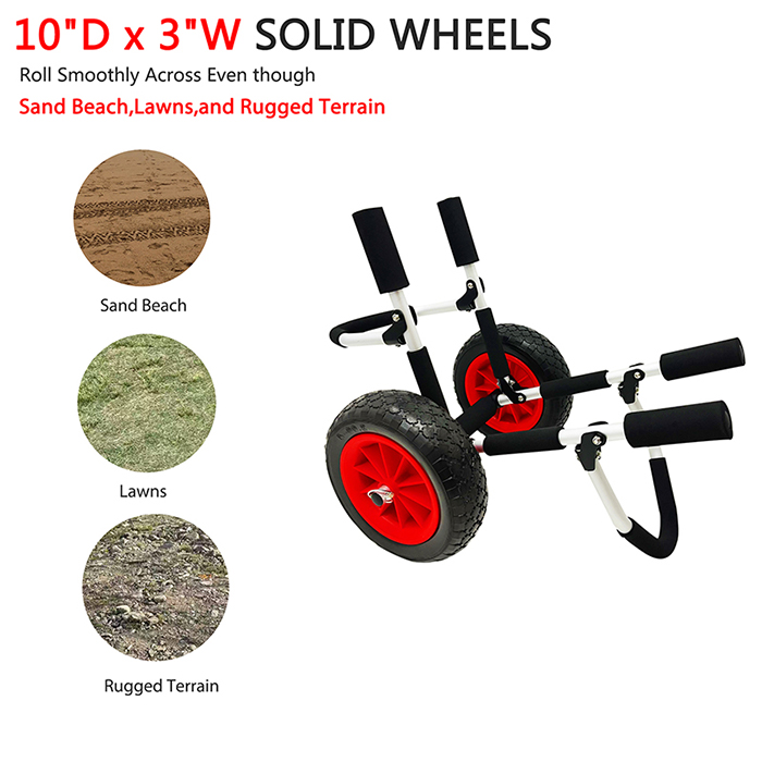 Il carrello a pagaia singola offre versatilità con varie opzioni di ruote per soddisfare le vostre esigenze specifiche. Scegli tra ruote pneumatiche, ruote in PU senza forature o ruote a palloncino. La dimensione delle ruote da 10 pollici garantisce stabilità e movimento fluido, anche su terreni irregolari. Le ruote pneumatiche eccellono sui terreni accidentati, mentre le ruote in PU senza forature sono ideali per superfici lisce. Per una manovrabilità eccezionale sulla sabbia soffice, le ruote a palloncino forniscono ulteriore galleggiabilità.